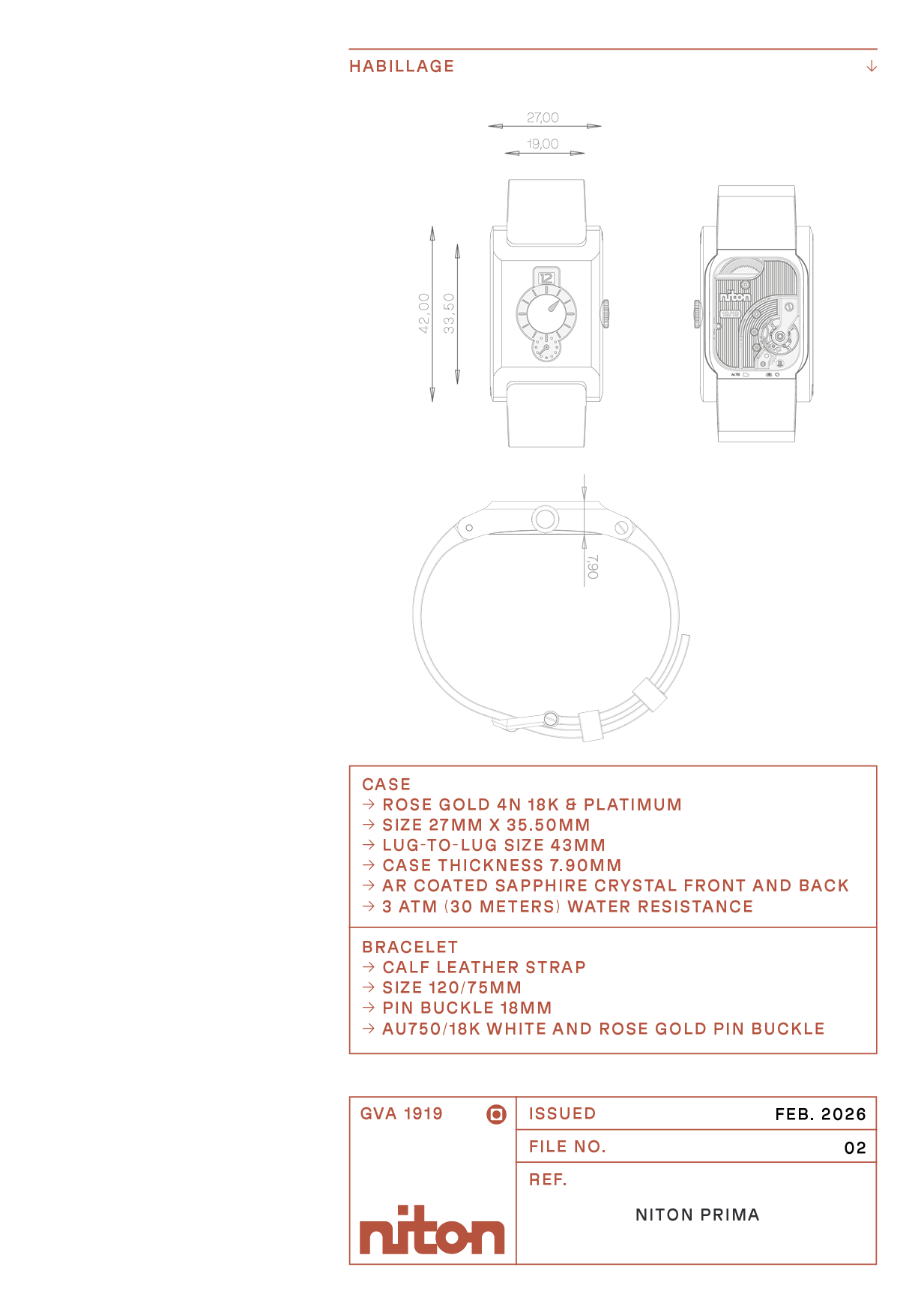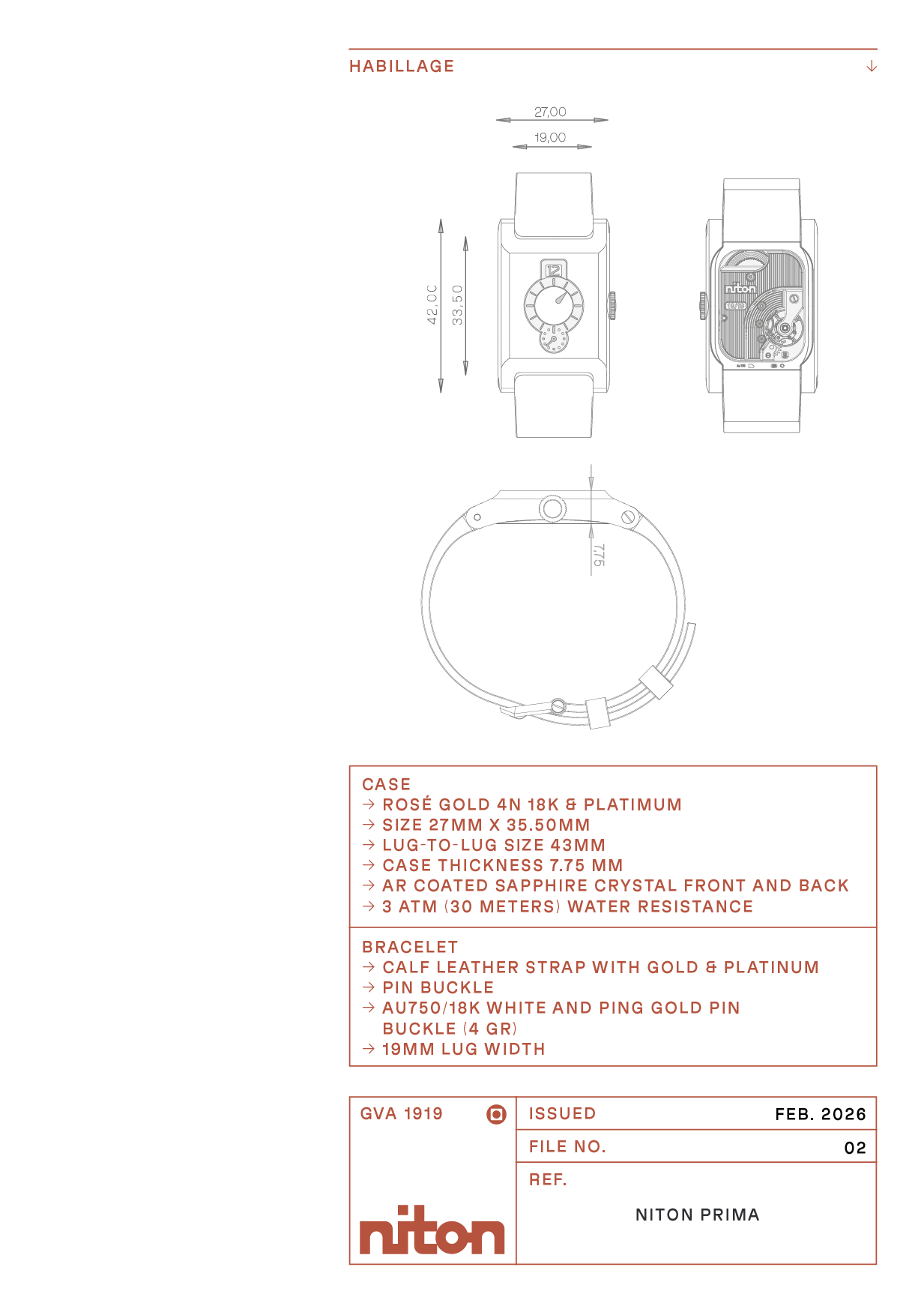 Bridging past and present. Limited to 38 pieces: 19 in platinum, 19 in rose gold. A nod to 1919, the founding date of Manufacture des Montres Niton SA.