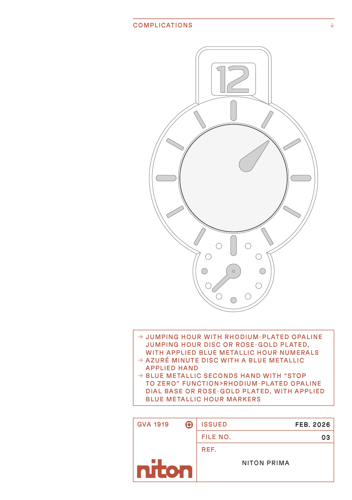 Niton signature jump-hour display was patented in 1928, and presents a decomposition of time mixing digital and analog indications that are both artistic and precise.